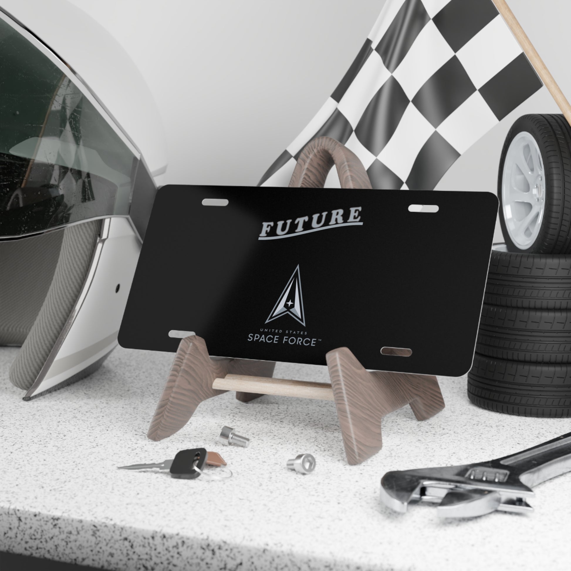 Elevate your vehicle or display with this premium USSF Future Space Force aluminum vanity plate — engineered for enthusiasts who demand quality and precision. The sleek white face delivers brilliant, high-resolution color reproduction, while the brushed silver backing adds a refined, industrial aesthetic. Pre-drilled mounting holes ensure effortless installation on most bumpers, frames, or garage walls, and the lightweight yet durable aluminum construction resists rust and weathering for years of reliable service.